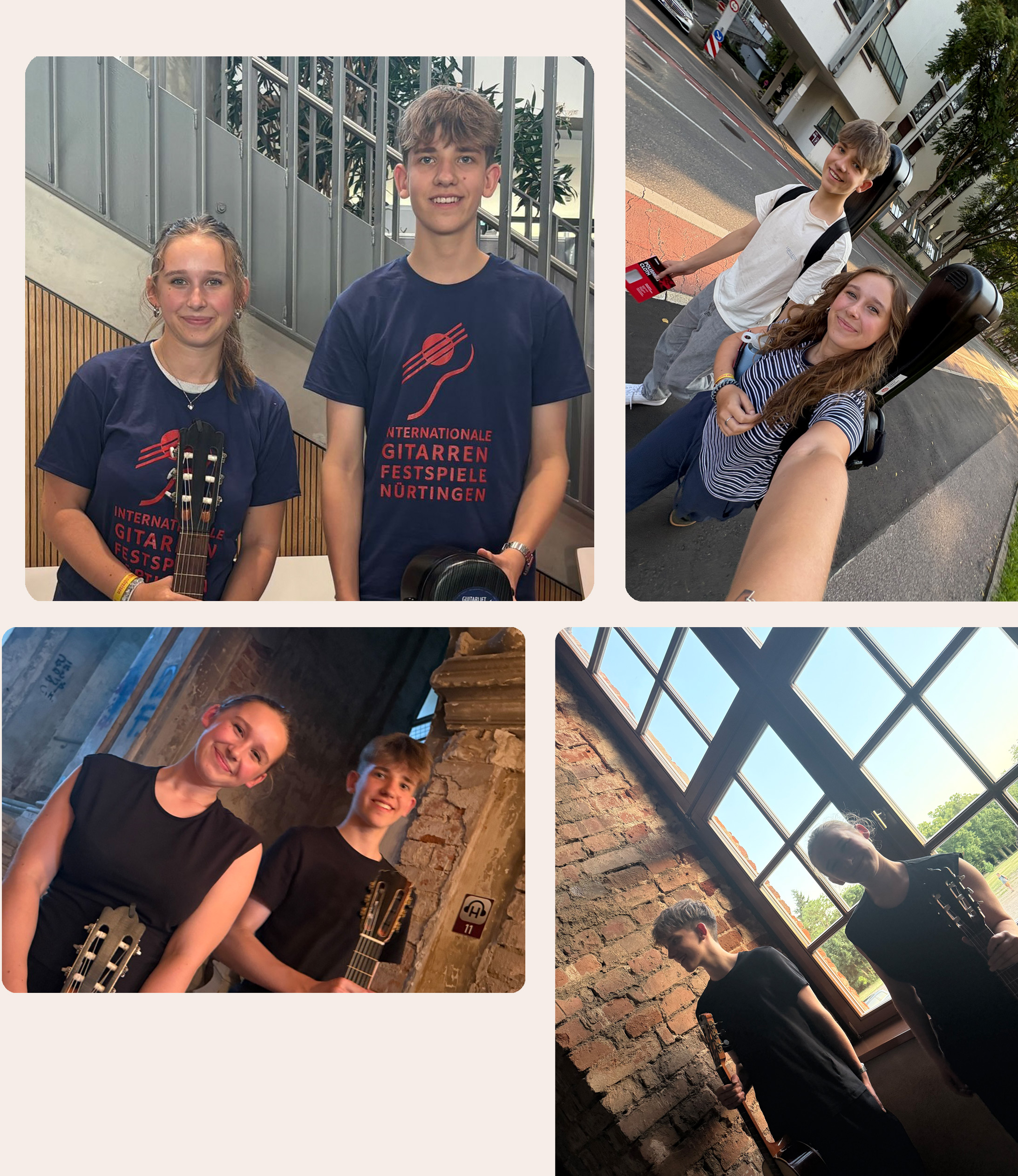 Im Jahr 2025 hatten wir zudem die besondere Gelegenheit, an zwei international renommierten Veranstaltungen teilzunehmen: dem Internationalen Bergischen Gitarrenfestival sowie den Internationalen Gitarrenfestspielen in Nürtingen. Diese Begegnungen mit Gitarrist*innen aus aller Welt haben uns musikalisch bereichert und unseren Horizont noch einmal erweitert.